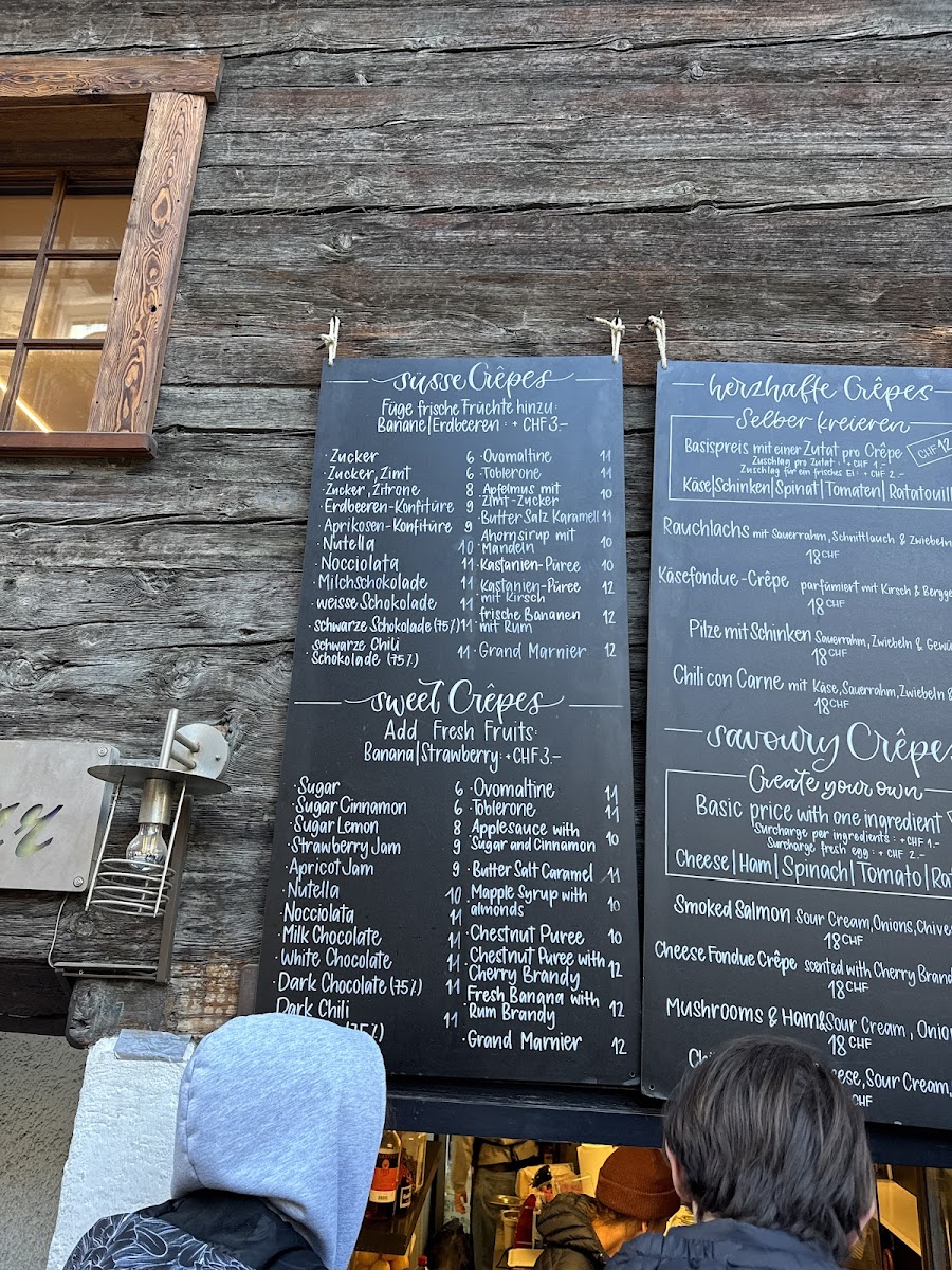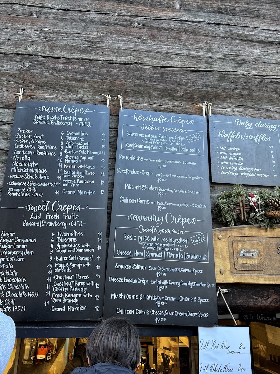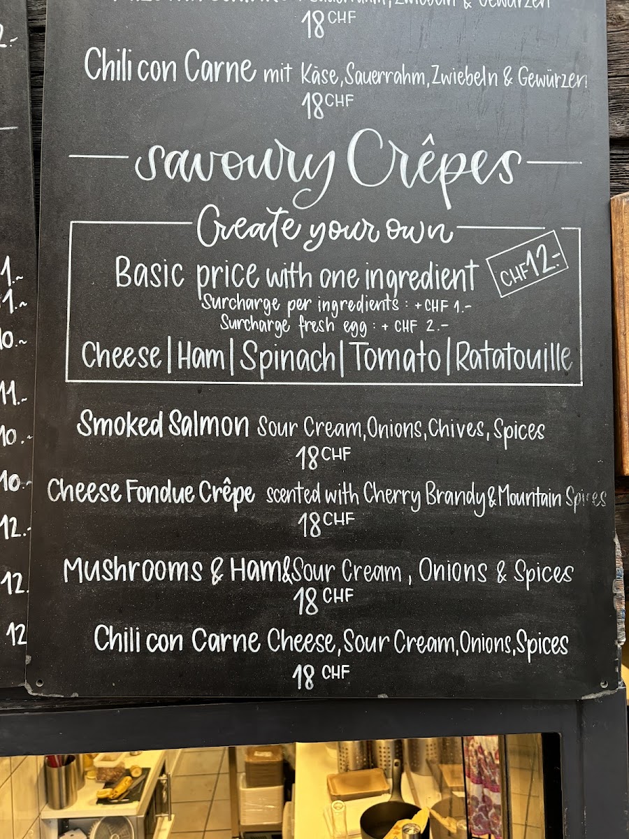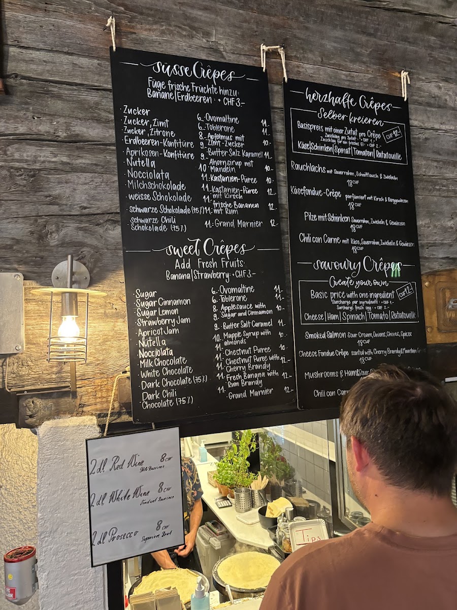 Stefanie's Crêperie offers a delightful range of sweet and savory options that showcase the versatility of crêpes. One standout dish is the Basisforeis Pro Crêpes, a rich and satisfying creation that promises a perfect balance of flavors. For those seeking something with a little more bite, the 蘑菇 起 司 火腿 is an excellent choice, blending mushrooms, cheese, and ham in a wonderfully savory combination. The Spinach Crepe is another great savory option, with fresh spinach and creamy filling providing a light yet flavorful experience. Sweet-tooth cravings are well-catered for with indulgent selections like the Chocolate Sauce Banana with Almonds, a heavenly mix of bananas and chocolate, topped with crunchy almonds for texture. Finally, the Crêp de Chocolate delivers the ultimate chocolate lover's treat, combining rich chocolate with the delicate texture of a crêpe. Whether you prefer something savory or sweet, Stefanie’s Crêperie offers a menu that guarantees a delicious and satisfying meal in the heart of Zermatt.